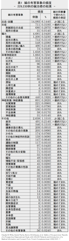 독일에서는 229,230명의 외래환자에 대해 전향적인 관찰 연구로 침의 유해현상 정보를 모으고 그 출현빈도를 밝혀 침의 인폼드 콘센트에 이용하는 동의서를 작성하였다.