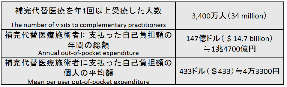 1)Tainya C. Clarke, Lindsey I. Black, Barbara J. Stussman, et al. Trends in the Use of Complementary Health Approaches Among Adults: United States, 2002–2012. National Health Statistics Reports.2015;79:1-15 http://www.cdc.gov/nchs/data/nhsr/nhsr079.pdf (2016-12-2)