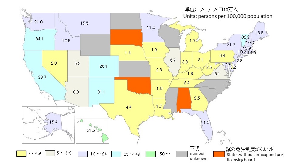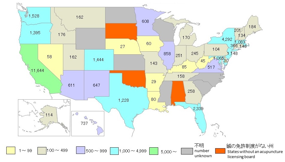*아래 자료는 다소 시간이 경과된 것이기는 하나, 미국의 침술 현황과 제도 전반에 대해 개관하고 있다. 자료는 아래 일본의 침구의료보급기구 사이트에 게재된 것이다.