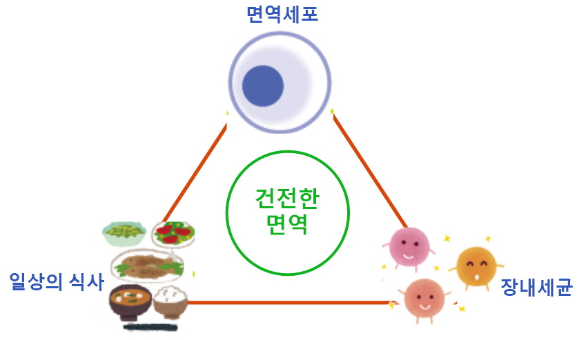 요컨대 우리의 세포(면역세포) - 장내세균 - 평상시 식사라는, 이 3가지가 함께 건전한 면역 기능이 발휘한다는 사실을 기억해 두자.