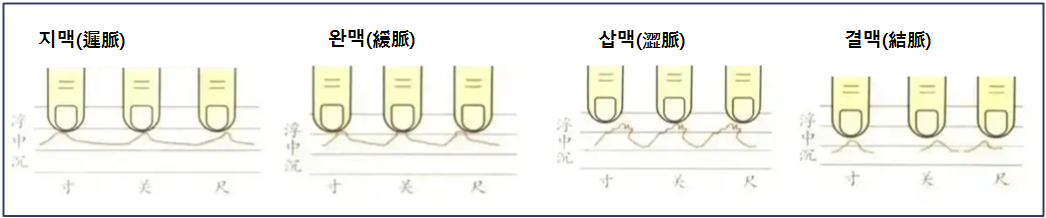 脈象:1호흡(내쉬고 들이쉼)에 3회 이르러, 맥이 느리고 천천히 이른다