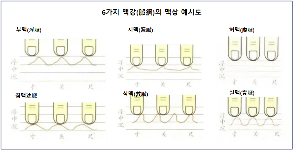 이 정상맥의 맥상을 기준으로 6가지 병맥의 맥상은 다음과 같읕 이미지로 이해해 볼 수 있다
