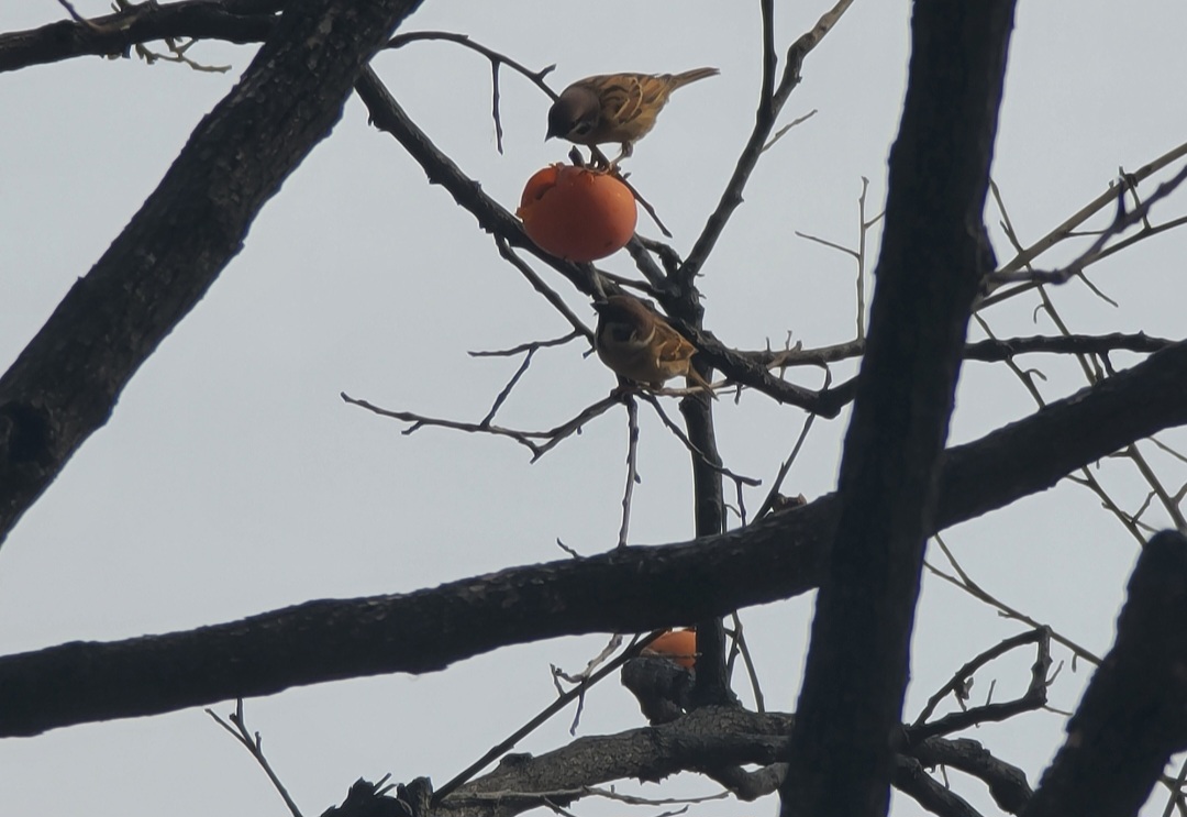 추위에 떠는 참새 높은 나무에 처량하고