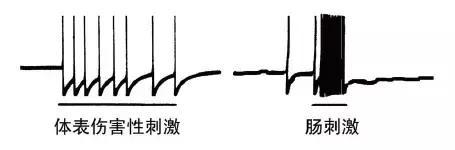 형태학적 연구에 따르면 의료용 거머리에서는 심장관(진화 과정에서 원시적인 심장)에 분포하는 신경이 해당 체벽에도 분포하는 것으로 나타났다. 생리학적 연구에서는(그림 5) 유해 자극을 감지하는 거머리 신경절의 뉴런이 소화관의 자극에도 반응하는 것으로 관찰되었다(포유류에서는 유해 자극을 감지하는 뉴런만 내장에서 오는 구심성 신호를 수신하기 위해 활성화된다).